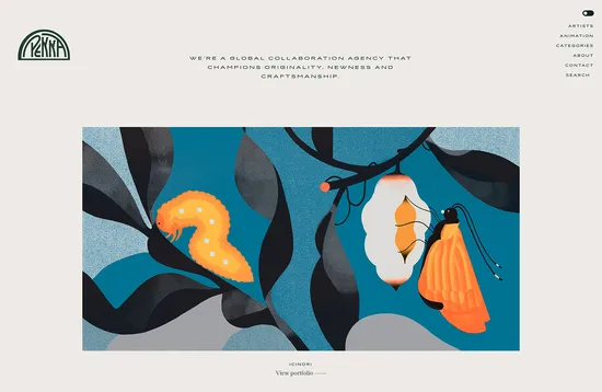 Agent Pekka is an agency representing illustrators. The site provides a well organised, sophisticated foil for the artists’ work, while also making good use of illustration in its design.