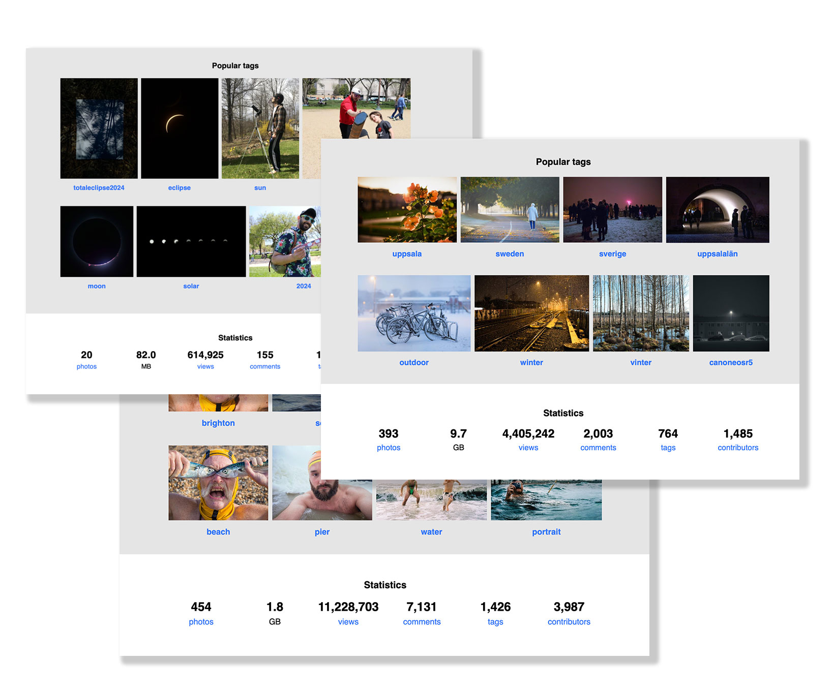 For the April 8th 2024 Solar Eclipse, NASA partnered with Flickr to gather photos from Flickr members who saw the eclipse. Given that there are tens of billions of photos on Flickr now, there are thousands, if not millions, of shared historical moments like this captured from a variety of perspectives. Plus, space!