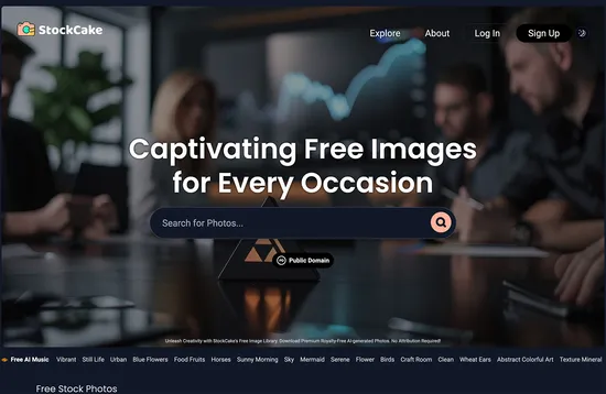 All of the stock images on StockCake are AI-generated, public domain, and free. You can search by subject, mood, and color.